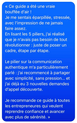 Tu restes uniquement si cela t’apporte de la clarté, du soutien, de la sérénité et t’aide à structurer ton business pas à pas.